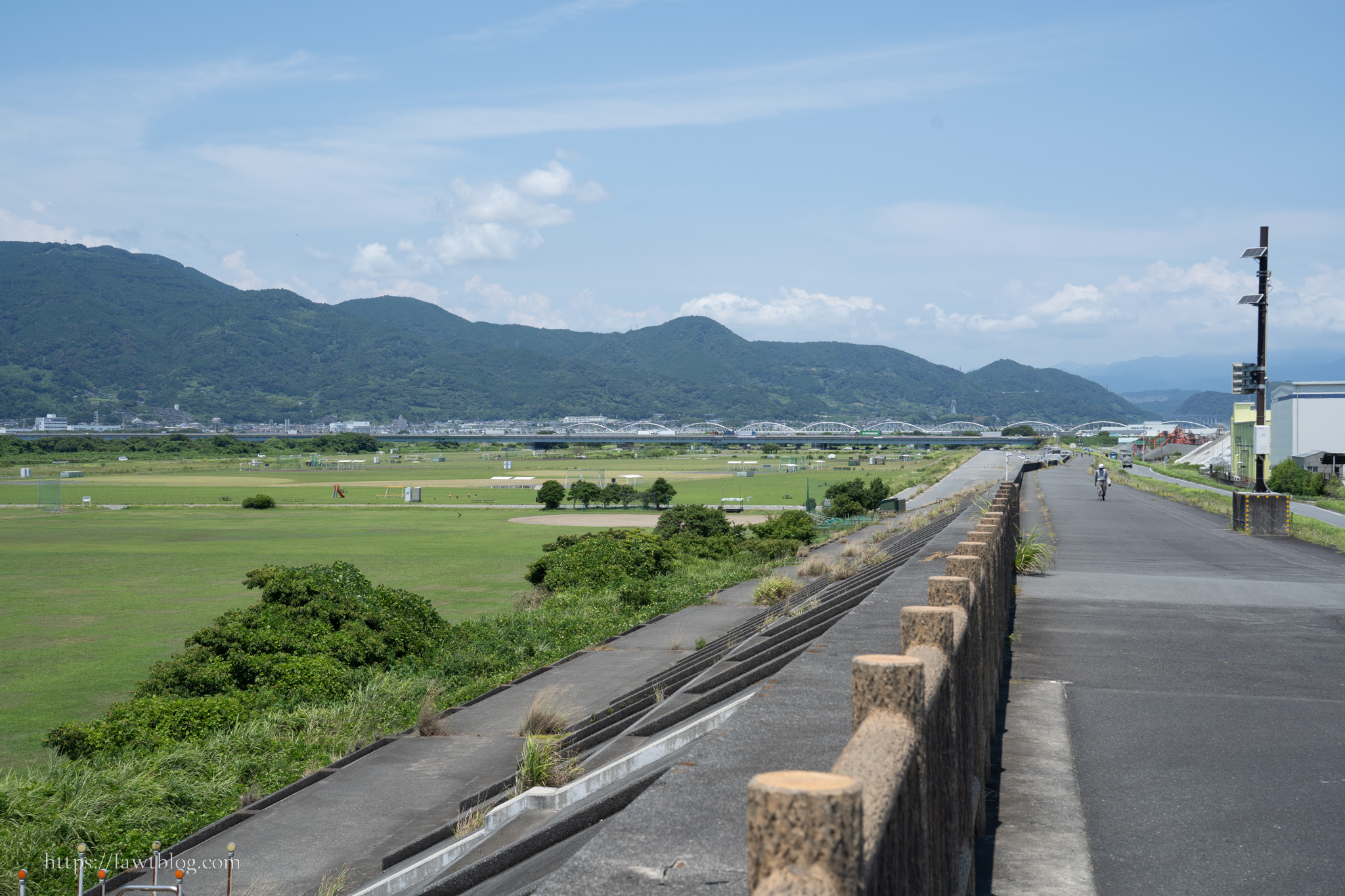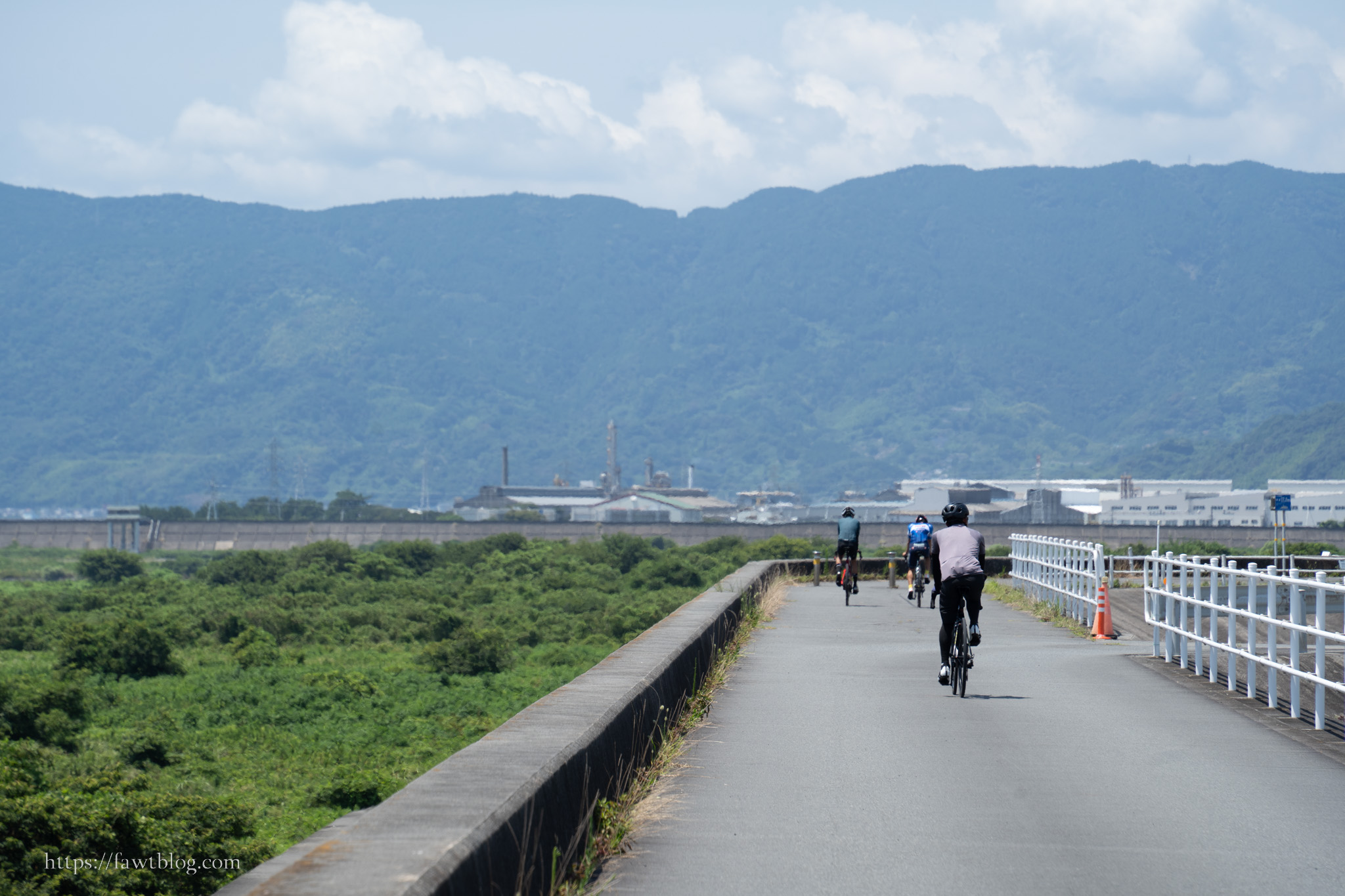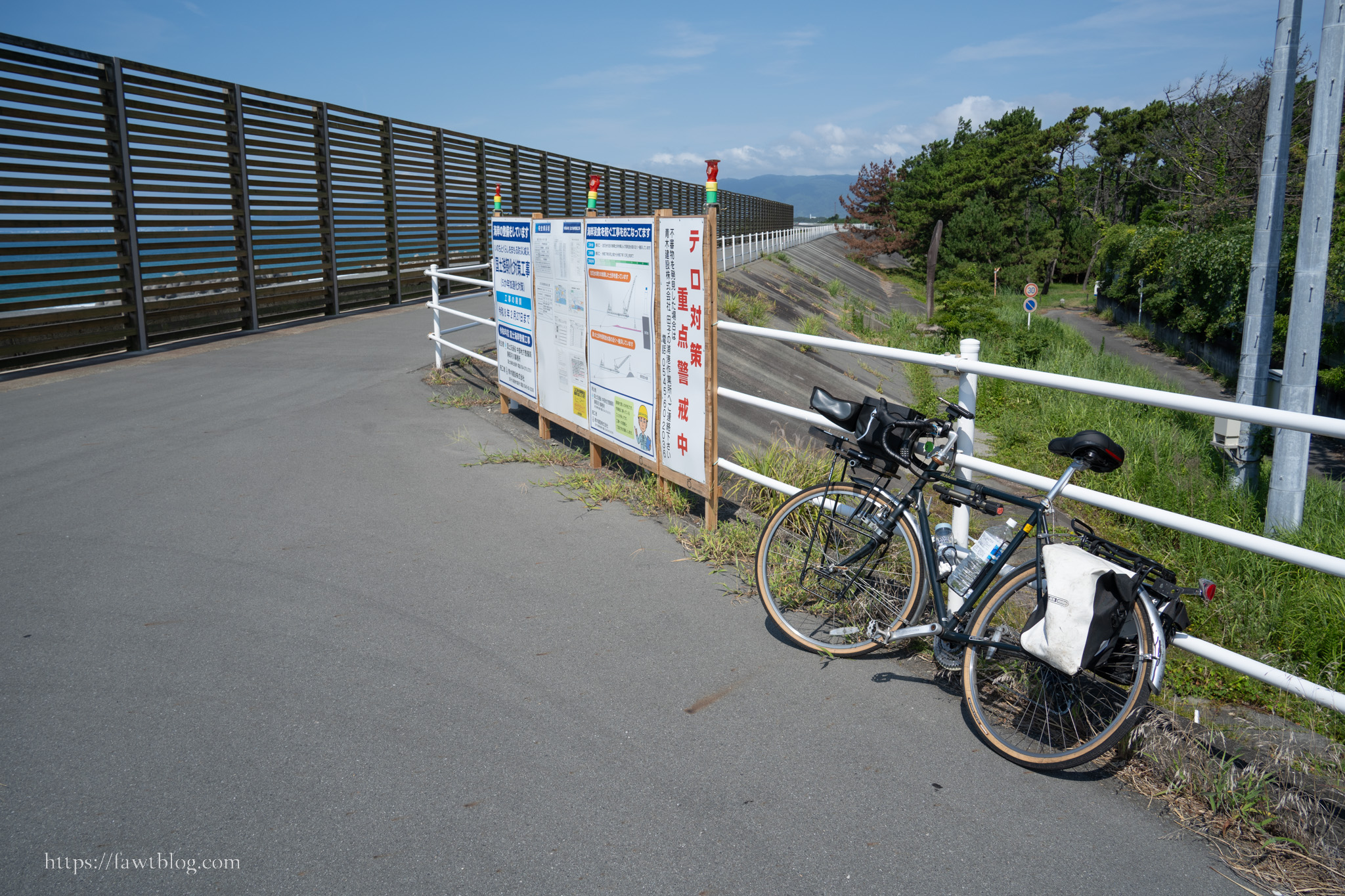 真昼になると日差しがキツイですがこうして川の流れを見ていると涼しい気持ちになれます。海あり、緑あり、川ありで変化が楽しいサイクリングコースですね。