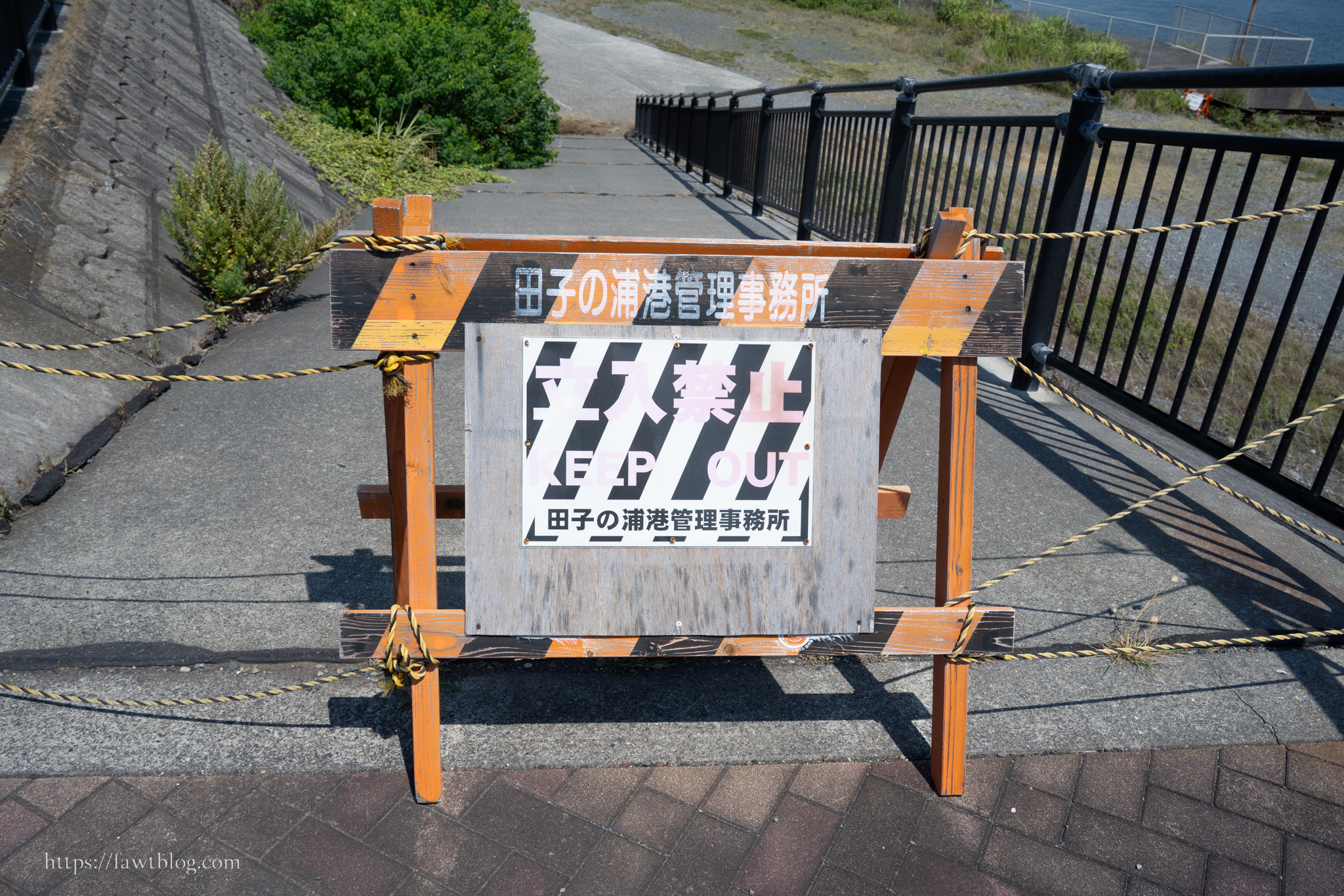 なんと、海岸へは下りられないようにトラロープが張られていました。ゼロ富士は標高0mから富士山頂まで、3776mをすべて自分の足で登るというロマンあふれる登山スタイル。そのスタートは海抜0mからスタートしましたよという無言の宣言のために海面にタッチするのが習わしなのですが、これではその儀式ができませんね。最近になって海岸に近づけないようになったのでしょうか。