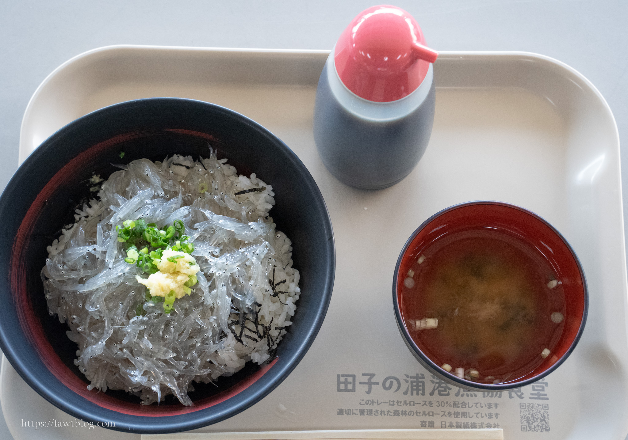 お昼ご飯は「田子の浦港」の漁協食堂の生しらす丼