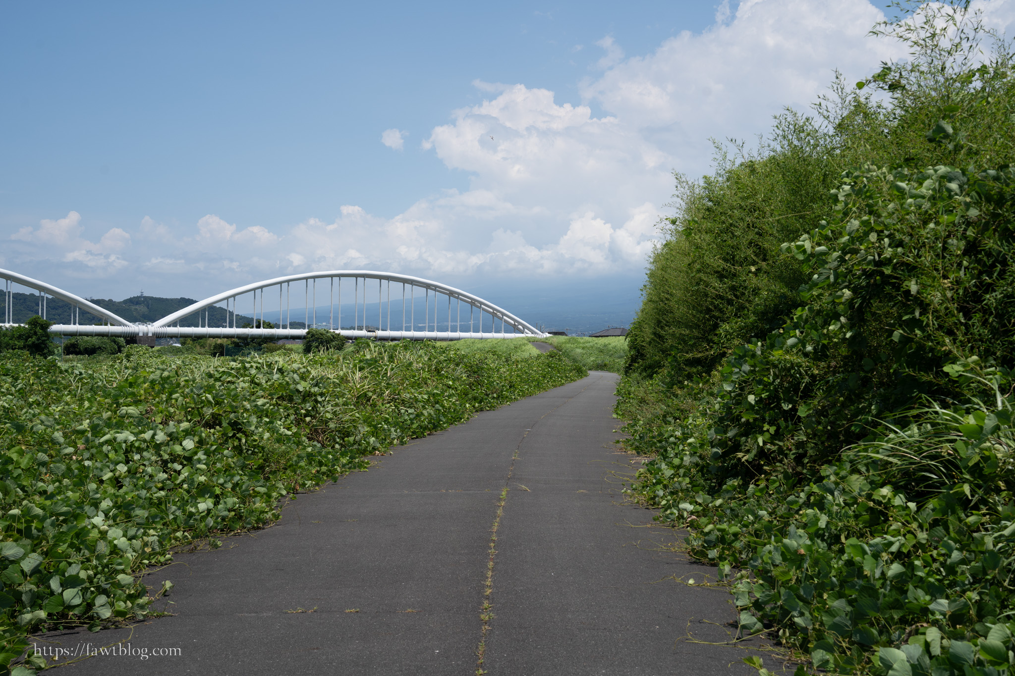食後は河川敷ゾーンのサイクリング。次の富嶽三十六景スポット「駿州片倉茶園ノ不二」が内陸側にあるので湾岸から離れます。