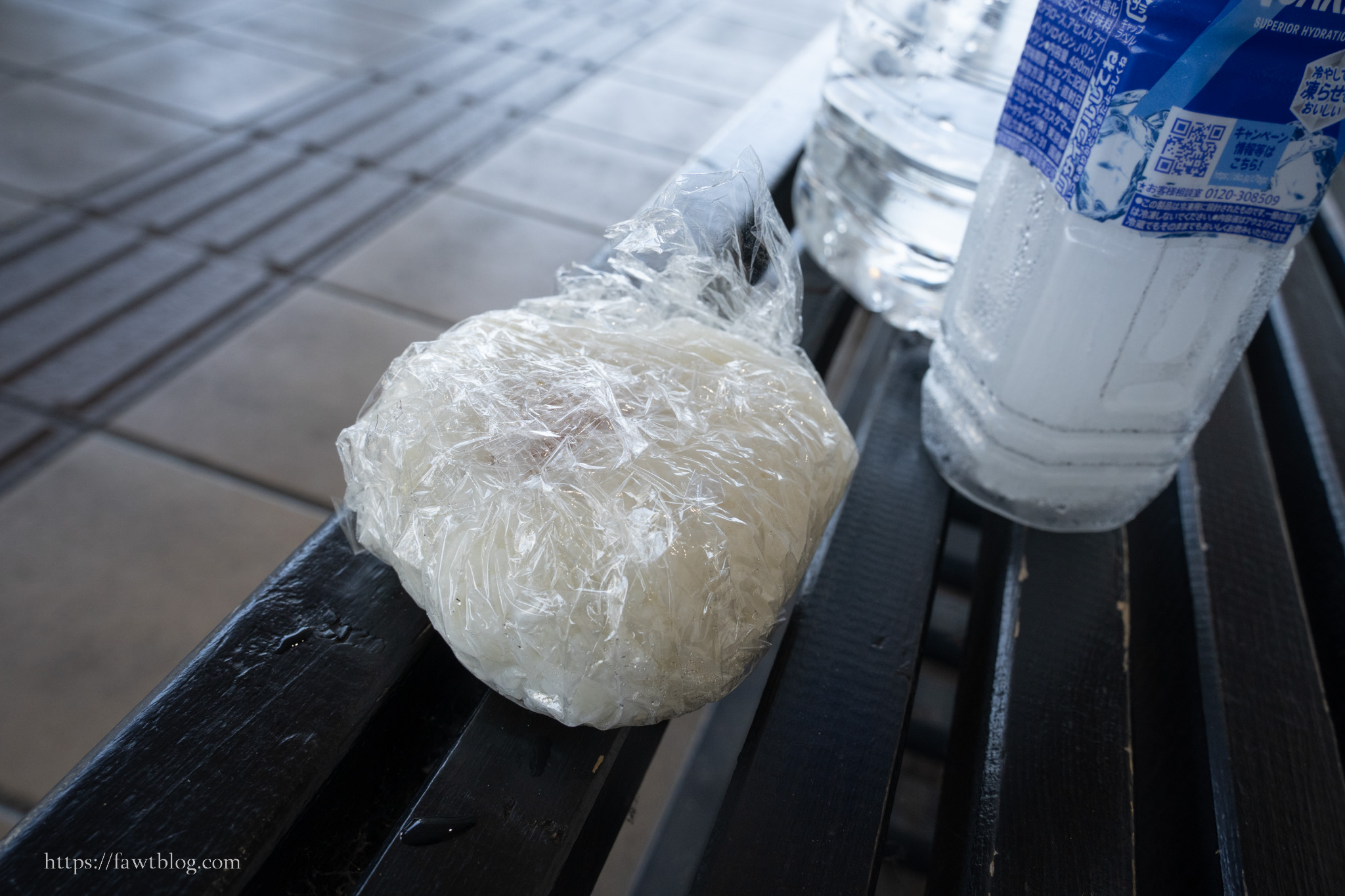 ベンチで休憩していたらおばちゃんからおにぎり頂きました。熊本から来られたということで、同じ九州民のよしみで優しくしてくれたのでしょう。ありがたくいただきますm(__)m