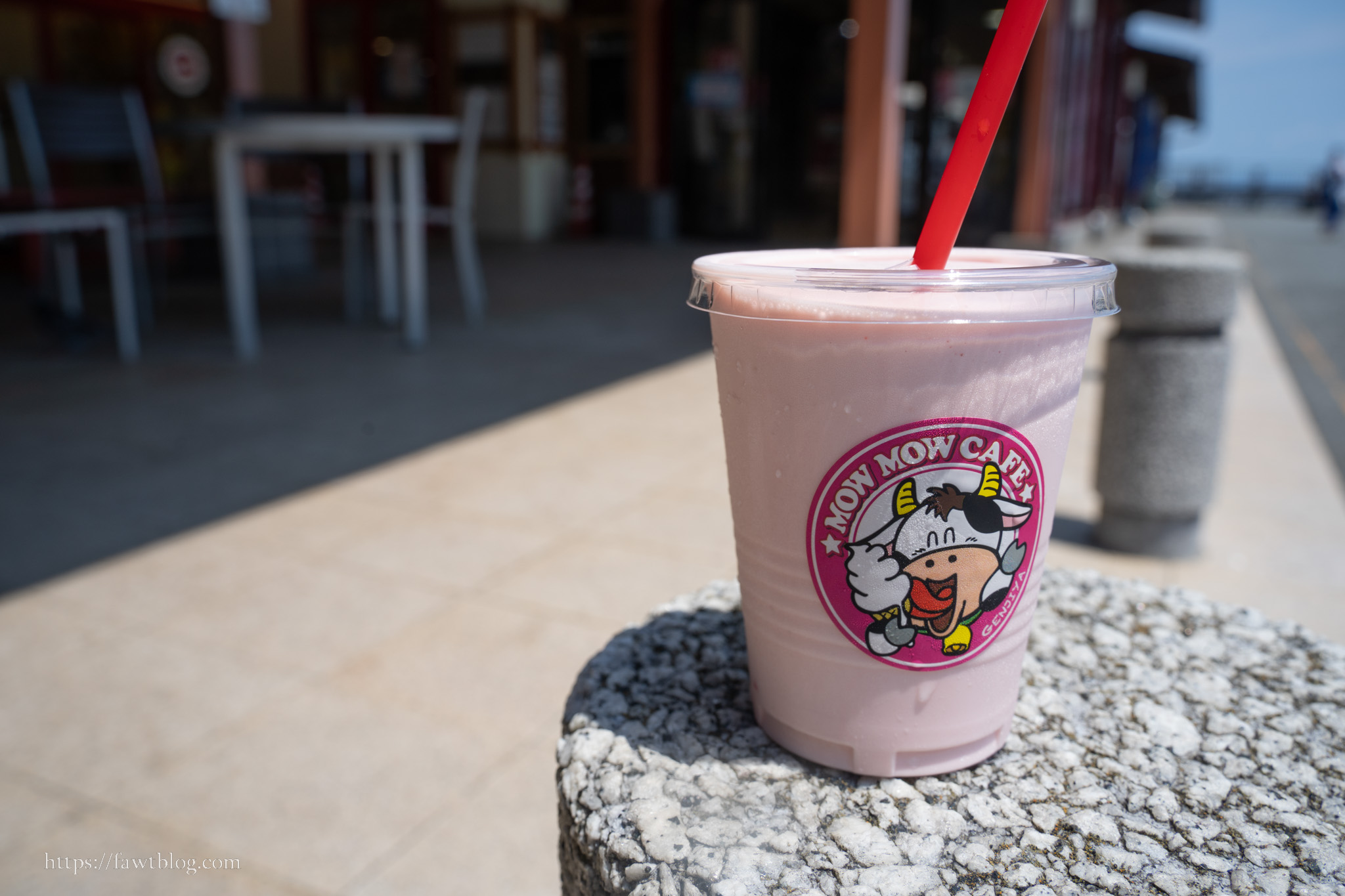 あまりにも暑いのでアイスも食べたくなりました。道の駅にあるMOW MOW CAFEというところでプレミアムシェーク(いちご)を購入。美味すぎる。即飲み干してクールダウン。